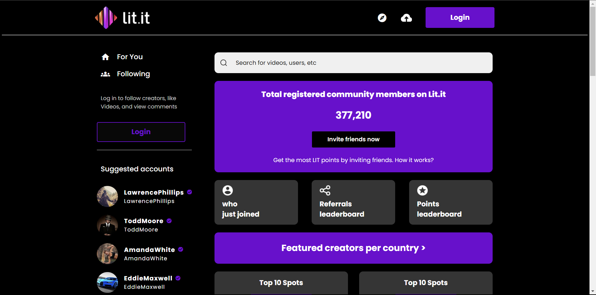 This is an video sharing platform, which allows you to discover, watch and share videos and other visual content. It is free to use. Service may be different in the Application and the Website. Not all Service or features of the Website or the Application may be fully available in your country or region. Different features may be available in different versions of the Website or the Application. If you have created an Account, then certain of your interactions with our Service will generate LIT points attributable to your Account. LIT points function as a Platform currency, which you can get and spend exclusively on the Platform. For example, you will be able to get LIT points for the following interactions with the Platform: viewing and sharing content on the Platform; watching advertising; inviting friends to join the Platform; Actions generating LIT points performed by a user on the Platform will be subject to certain in-app algorithms and limitations that will apply in order to prevent abusive and unfair conduct by the users. For example, a daily number of rewarded shares of content and a daily number of rewarded views of content one user can generate will be limited.