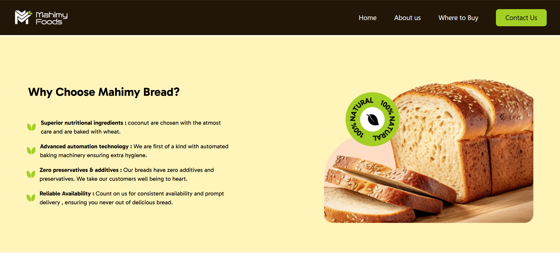 Mahimy Foods represents a local food and bakery brand with a digital presence highlighting its range of fresh bakery products, particularly bread, distributed through a network of partnered neighborhood vendors. The website showcases the brand’s focus on quality, accessibility, and community reach, helping customers easily identify where they can purchase Mahimy Foods products nearby. With straightforward navigation, product details, and clear contact options for both customers and business partners, the site reflects a growing food company that balances traditional distribution with a modern digital footprint to strengthen brand visibility and trust in its local market.